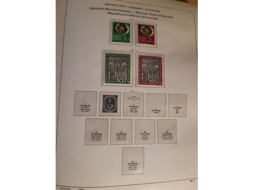 Germany, mixed. ★★/★/⊙. With few exceptions cpl collection BRD 1949–1974 in Scott album, Berlin 1948–1973 incl. e.g. Mi1.. Read more Germany, mixed. ★★/★/⊙. With few exceptions cpl collection BRD 1949–1974 in Scott album, Berlin 1948–1973 incl. e.g. Mi1–32, 34–41, 75–154 and Saar * 1957–1959. Mostly * until 1960 incl. some dupl. Please see a selection of scans at www.philea.se. (1300) Show less