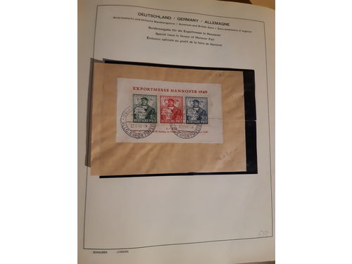 Germany, mixed. Collection used 1945–1967 in Schaubek album. American and British Zone, French Zone Saar. BRD and West B.. Read more Germany, mixed. Collection used 1945–1967 in Schaubek album. American and British Zone, French Zone Saar. BRD and West Berlin.Nice collection. Please see a selection of scans at www.philea.se. Good quality. (ca. 800) Show less