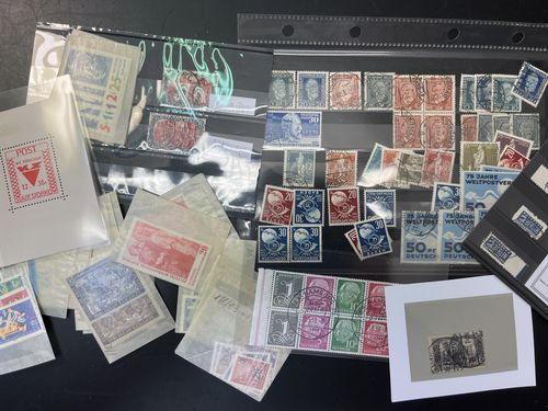 Germany, mixed. Accumulation ★★/★/⊙ 1940–1955 on leaves. Better stamps and sets incl. SAAR, Reich i.e. Braune band 1939–.. Read more Germany, mixed. Accumulation ★★/★/⊙ 1940–1955 on leaves. Better stamps and sets incl. SAAR, Reich i.e. Braune band 1939–1944, GFR and GDR incl. Karl-Marx souvenir sheets set *. Mostly fine quality. (76) Show less