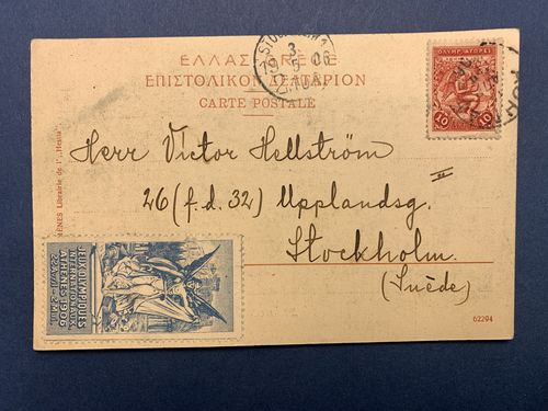 Olympic paraphernalia, Sweden. Athens 1896. Kristian Hellström (1880–1946). Swedish middle-distance runner and a sports administrator. He competed at the 1906 Intercalated Games in the 800 m and 1500 m events and finished in fifth and third place, respectively. Postcard from Athens to his father in Stockholm, Sweden depicting the stadium + postcard depicting the Royal entry. Show less
