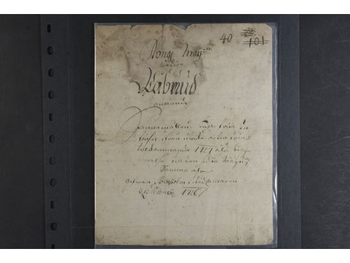 Proclamations, Sweden. Announcements, eight different 1647–1763 incl. one hand-written, plus three numbers of 'Stockholmsposten 1795–1814. The entire lot is presented at www.philea.se. Show less