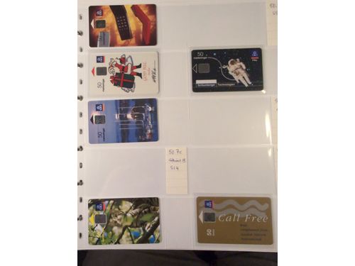 Telephone cards, ALL WORLD. Well filled collection, Sweden in seven albums and three foreign. mostly mint with many premium and promotion cards e.g. Spaceman, Gothenburg Santa, early magnetic cards (some used) e.g. Uppsala and Regiment cards. There is also a card reader included. Among the foreign cards we can mention one leadger with British Mercury Cards. In addition there are two boxes with duplicates (about 200 cards). In total over 1000 cards. Approx. 31 kg. Show less