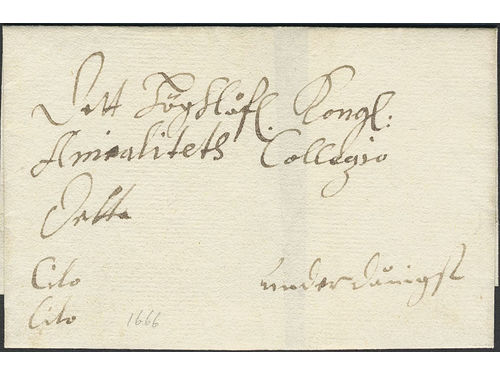 Sweden. Courier mail. Cover dated with pencil '1666', with notation 'Cito Cito'. Show less