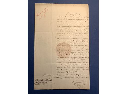 Manuscripts. Karl XIV Johan (1763-1818-1844). King of Sweden. Resolution dated Stockholm Palace July 23, 1842. Charta Sigillata 8.R:D: and 24. SCH:. Show less