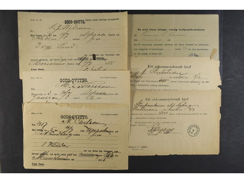 Sweden. Postal forms, lot 1870s–1970s. Receipts, address cards incl. one sent to Åland, railway-related items, etc. (30) Sweden. Postal forms, lot 1870s–1970s. Receipts, address cards incl. one sent to Åland, railway-related items, etc. (30) Show less