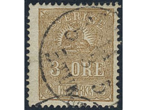 Sweden. Facit 14A used, 3 öre brown, type I. Fair centering. Crease. SEK 5500