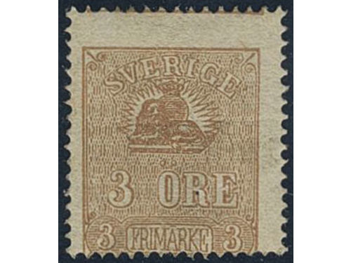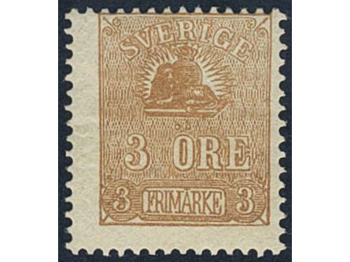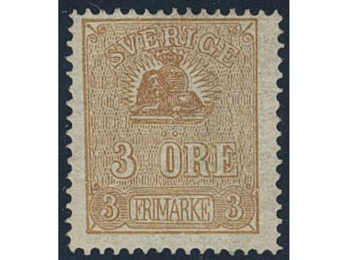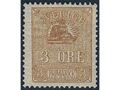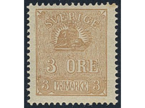 Sweden. Facit 14Be (★), 3 öre yellowish light brown, type II. Cert. HOW 2,3,1 'Ett mycket vackert och färgfriskt exemplar'. Show less