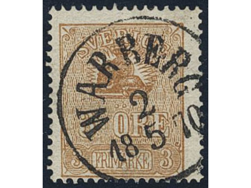 Sweden. Facit 14B used, 3 öre brown, type II. Superb cancellation WARBERG 2.5.1870.