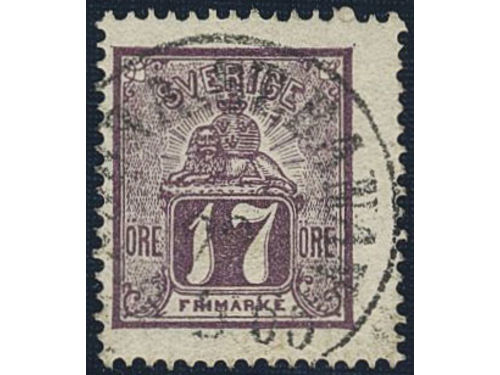 Sweden. Facit 15b used, 17 öre reddish-bluish lilac. Two ex with Danish numeral canc. 1. Show less