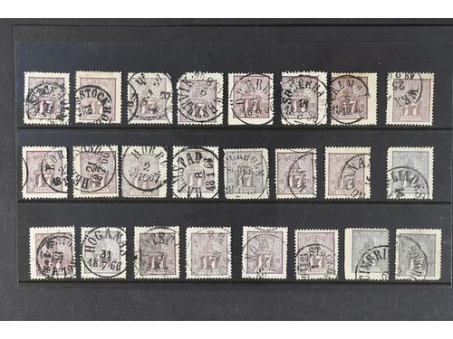 Sweden. Facit 15 used, 17 öre violet/grey. 24 ex. in very mixed quality/space filler.