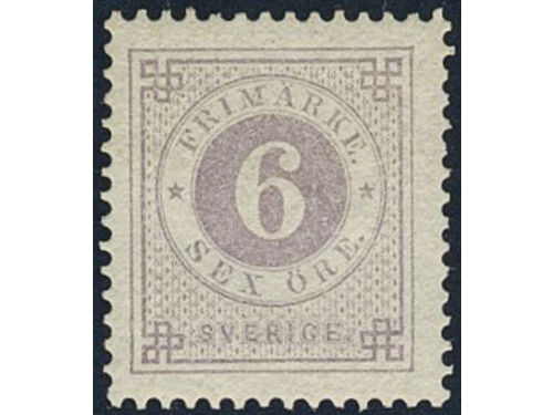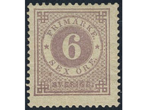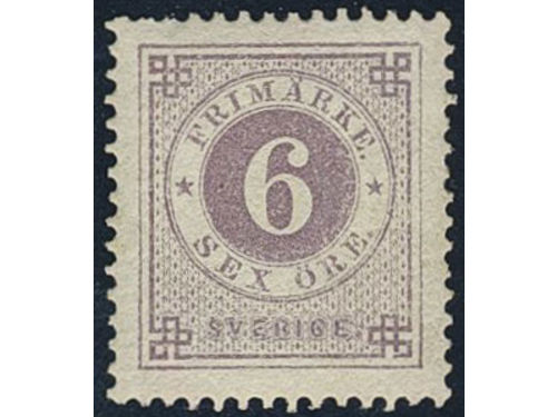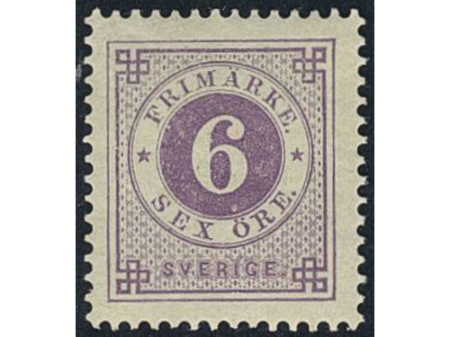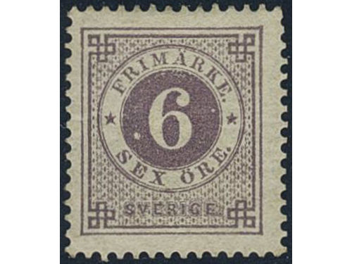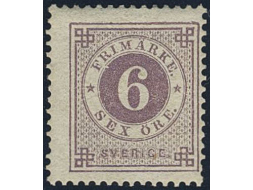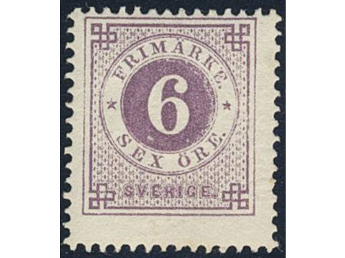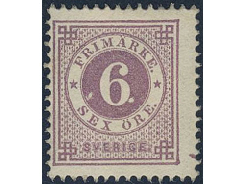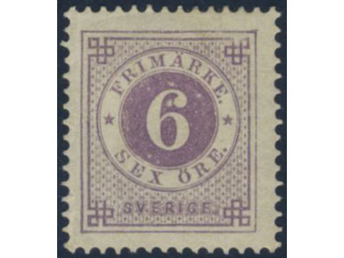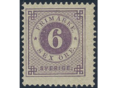 Sweden. Facit 31 ★★, 6 öre violet. Minor climate stains at back side. SEK 4000