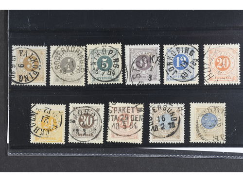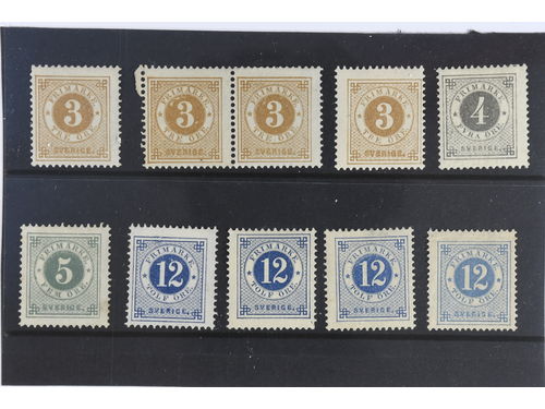 Sweden. Facit 28–30, 32 ★, Circle type perf. 13 without posthorn. Ten stamps. Show less
