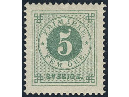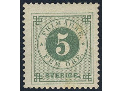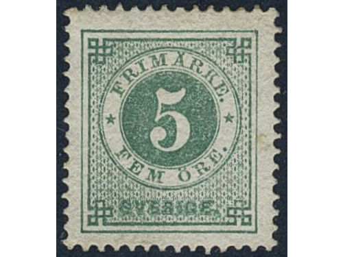 Sweden. Facit 30i ★, 5 öre bluish dark-green on calendered paper. Very fine and fresh. Show less