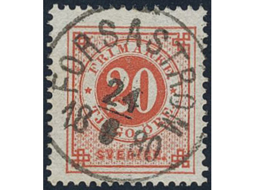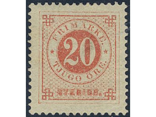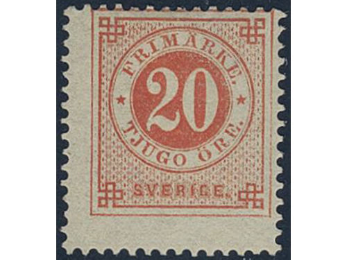 Sweden. Facit 33f ★, 20 öre orange-red on calendered paper. Very fresh. Opinion (shade) by HOW (2011). Show less