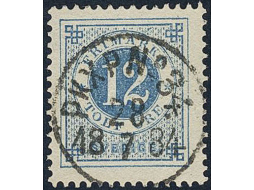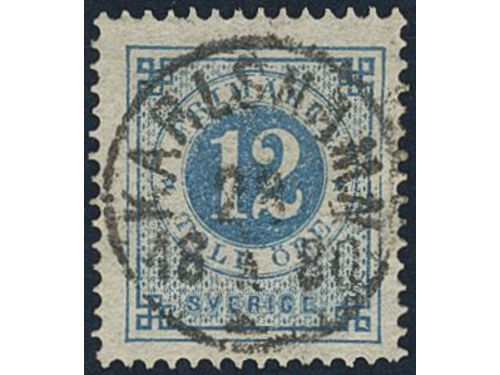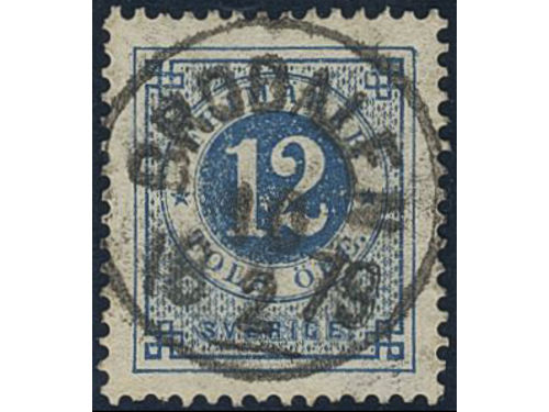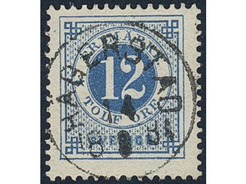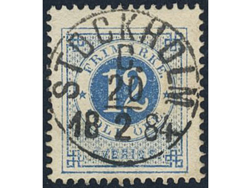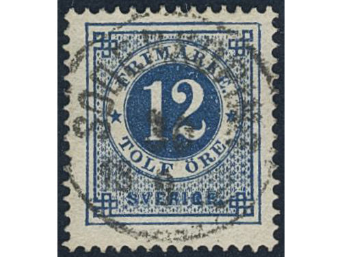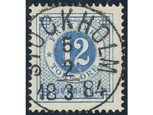 Sweden. Facit 32g used, 12 öre dark blue - light blue on soft paper. EXCELLENT cancellation STOCKHOLM 5 2.3.1884. Show less