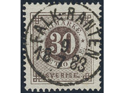Sweden. Facit 35b2 used, 30 öre black-brown on hard white paper. EXCELLENT cancellation FALK.-RANTEN 9.7.1883. Show less