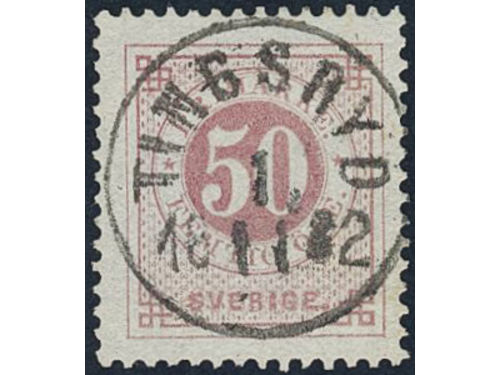 Sweden. Facit 36e used, 50 öre rose. EXCELLENT cancellation TINGSRYD 1.11.1882. Signed by O.P.