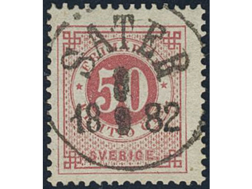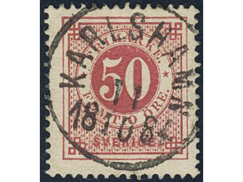 Sweden. Facit 36d used, 50 öre dull violetish carmine. Superb cancellation SVANESUND 27.5.1883. Some ink on the reverse. Show less