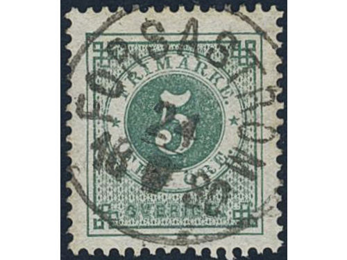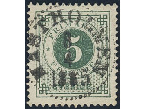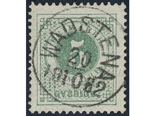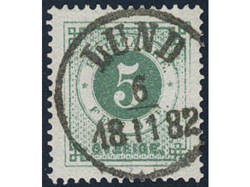 Sweden. Facit 30g used, 5 öre dull green on white paper. Superb cancellation SKENE 9.2.1884.