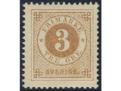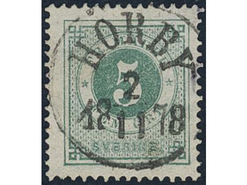 Sweden. Facit 28a used, 3 öre yellowish orange-brown. EXCELLENT cancellation STOCKHOLM 6.TUR 3.11.1877. Signed by O.P. Show less