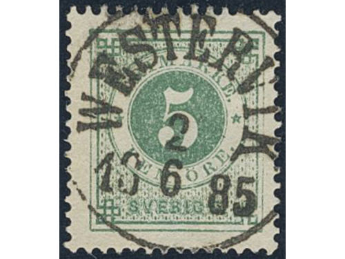 Sweden. Facit 30g used, 5 öre dull green on white paper. Superb cancellation SKENE 9.2.1884. Show less