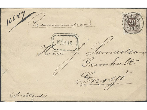 Sweden. Facit 35 on cover, 30 öre on very beautiful registered cover sent from WALLA 19.8.1880 via JÖNKÖPING 20.8.1880 (RED colour) to Gnosjö. Superb–EXCELLENT. Show less