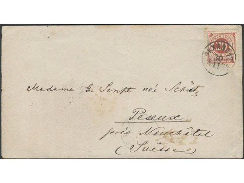 Sweden. Facit 33 on cover, 20 öre cover sent from PKXP Nr 17 30.11.1878 via PKXP Nr 2 1.12.1878 to Switzerland. Arrival..