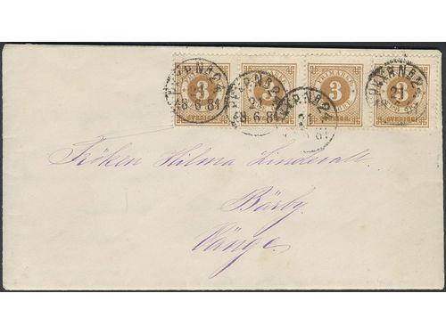 Sweden. Facit 28 on cover, 4×3 öre on cover sent from PKXP Nr 24 21.6.1881 to Vänge. Show less