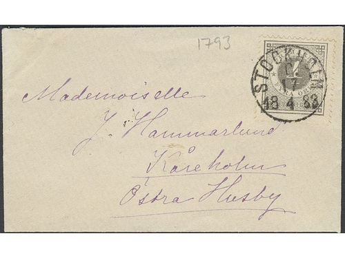Sweden. Facit 29b on cover, Superb miniature envelope for printed matter, sent from STOCKHOLM C 17.4.1883 to Östra Husby. Opinon (shade) by Erich Harbrecht (1993). Show less