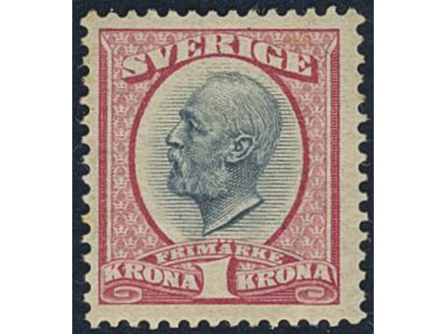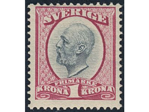 Sweden. Facit 60 ★★, 1900 Oscar II 1 Kr black/red. Very fine. SEK 4400