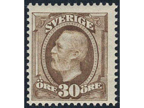 Sweden. Facit 58vm1 ★★, 1891 Oscar II 30 öre brown, inverted wmk. Very fresh. SEK 1800 Show less