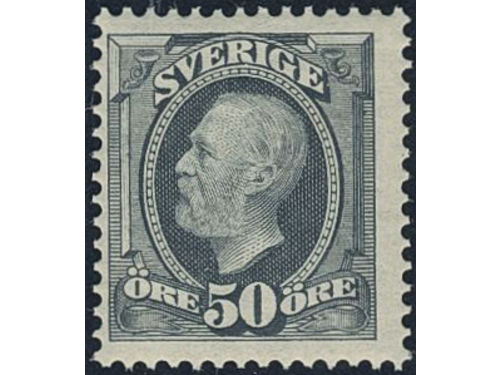 Sweden. Facit 59vm1 ★★, 1898 Oscar II 50 öre grey, inverted wmk. Very fresh. SEK 3000 Show less
