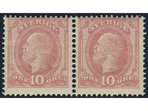 Sweden. Facit 45 ★★, 1886 Oscar II with posthorn on back 10 öre red in pair. SEK 4400 Show less