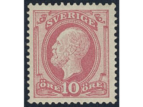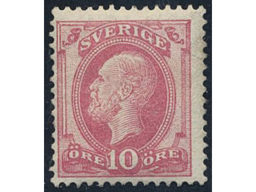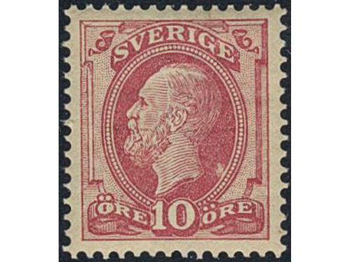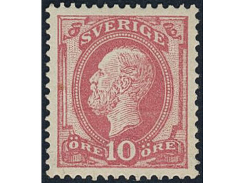 Sweden. Facit 39 ★, 1885 Oscar II, letterpress 10 öre red. Almost off-centered, unfresch. SEK 1800