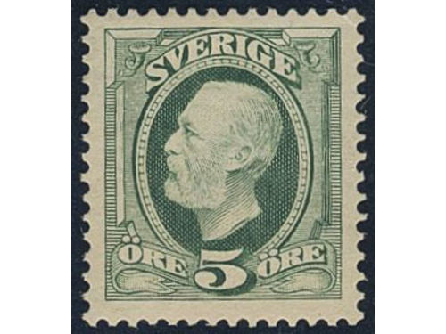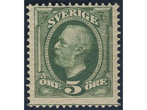 Sweden. Facit 52b ★★, 5 öre Oscar II pale head, slightly yellowed gum. SEK 6500 Show less
