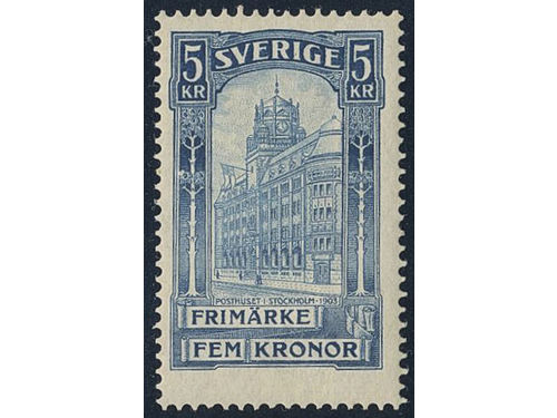 Sweden. Facit 65 ★★, 1903 General Post Office 5 Kr blue (1). Fair centering. SEK 5000
