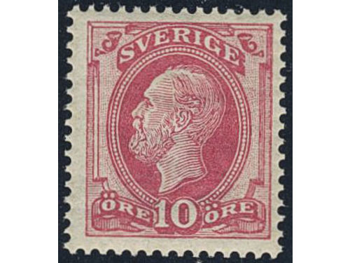 Sweden. Facit 45 ★★, 1886 Oscar II with posthorn on back 10 öre red. Very fine–superb. SEK 2200+ Show less