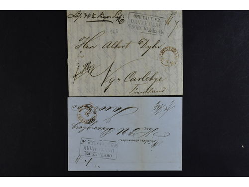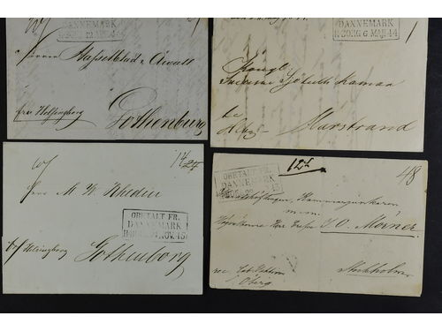 Sweden. Foreign-related cover. Denmark. One cover and one letter sent in transit via Helsinborg to Finland – both with t.. Read more Sweden. Foreign-related cover. Denmark. One cover and one letter sent in transit via Helsinborg to Finland – both with the pmk OBETALT FR. DANNEMARK H.BORG 1846, and with red pmks GRISSLEHAMN. (2). Show less