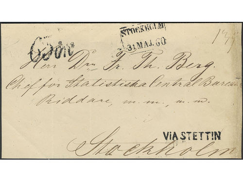 Sweden. Foreign-related cover. Germany. Incoming cover front sent VIA STETTIN to STOCKHOLM 31.MAJ.60. Postage due mark 63 öre. Sweden. Foreign-related cover. Germany. Incoming cover front sent VIA STETTIN to STOCKHOLM 31.MAJ.60. Postage due mark 63 öre. Show less