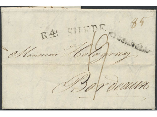 Sweden. Foreign-related cover. France. Letter dated 'Stockholm 8. fevrier 1803' sent via Hamburg with pmk SUEDE, to Bordeaux. Sweden. Foreign-related cover. France. Letter dated 'Stockholm 8. fevrier 1803' sent via Hamburg with pmk SUEDE, to Bordeaux. Show less