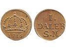 Coins, Sweden. Karl XII, SM 214, 1 daler SM 1715. 3.00 g. Stockholm. Kronan, with some red luster. 01.