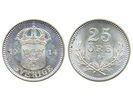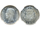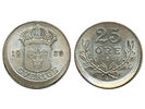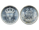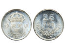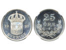 Coins, Sweden. Gustav V, SM 1, 20 kronor 1925. A high-condition piece with prooflike reverse, strong early strike with well accentuated portrait details. A few insignificent h..