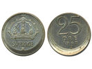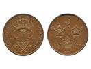 Coins, Sweden. Gustav V, MIS II.12, 2 öre 1948. Approx. 40 degree die rotation. 01.