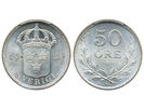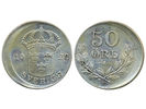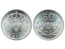 Coins, Sweden. Gustav V, MIS II.14, 2 öre 1950. Die rotation approx. 25 degrees. Unusual. SM 264. 1+.