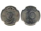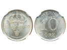 Coins, Sweden. Gustav V, MIS I.22b, 10 öre 1940. Graded by NGC as MS66. SM 161. 0.