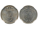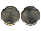 Coins, Sweden. Gustav V, MIS II.11, 5 öre 1948. Dark bluish lustre with superb appearance. Graded by PCGS as MS66. 0.