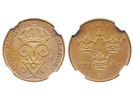 Coins, Sweden. Gustav V, MIS II.8, 2 öre 1944. Superb example with bluish black lustre and reflective surfaces. Graded by NGC as MS65. 0.