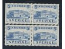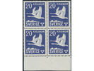 Sweden. Facit 337C ★★, 1942 Flying Swans 20 Kr blue, perf on four sides. In block of four. SEK 4800