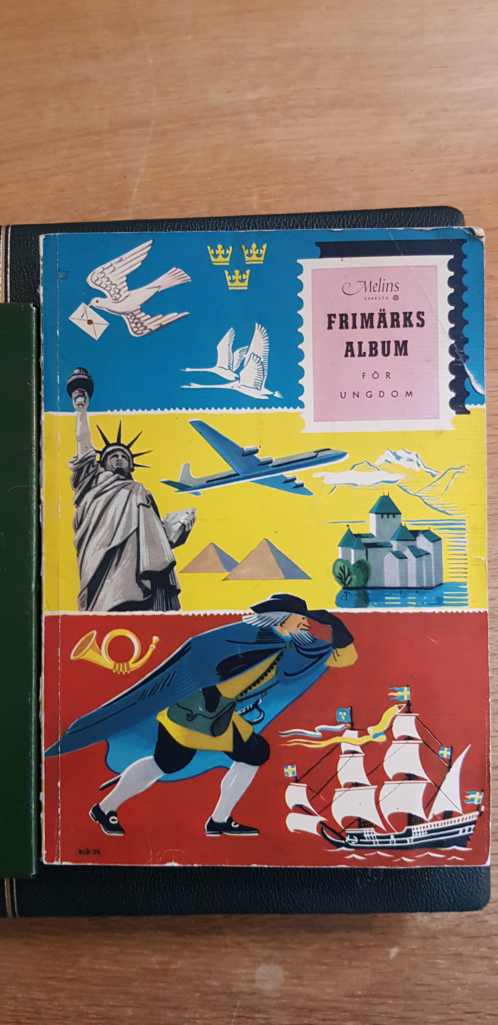 Sweden. Collection/accumulation mostly ★★ 1855–1955 in box. Sparsely filled Lindner album. Also included some older postcards and similar, a metal box with stamps and youth stamp album. Please see a selection of scans at www.philea.se. Mostly fine quality. (>500)
