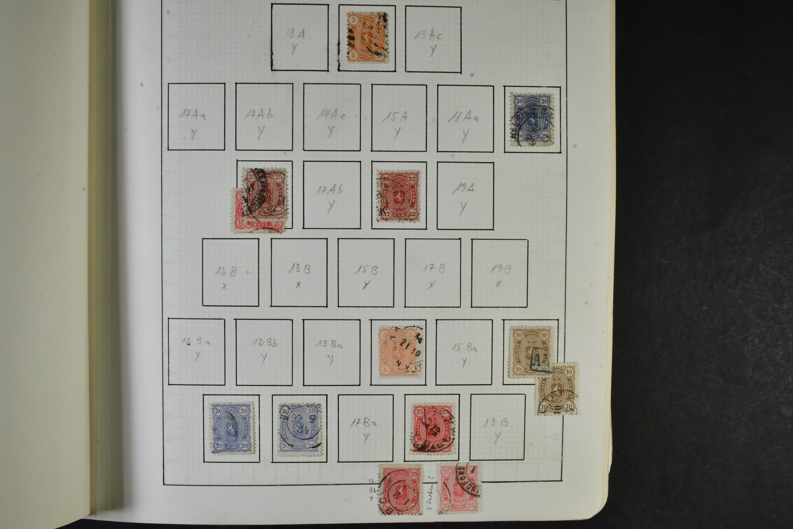 Finland, Aunus. Collection used 1885–1980 in large album with approx. 100 leaves with stamp mounts. Excellent stamped collection of Finland very nice mounting on grid sheets text is available for each mark letters mounting on loose pockets and with fasteners very good quality of the entire collection approx. 100 sheets in a binder. Good quality. (700)